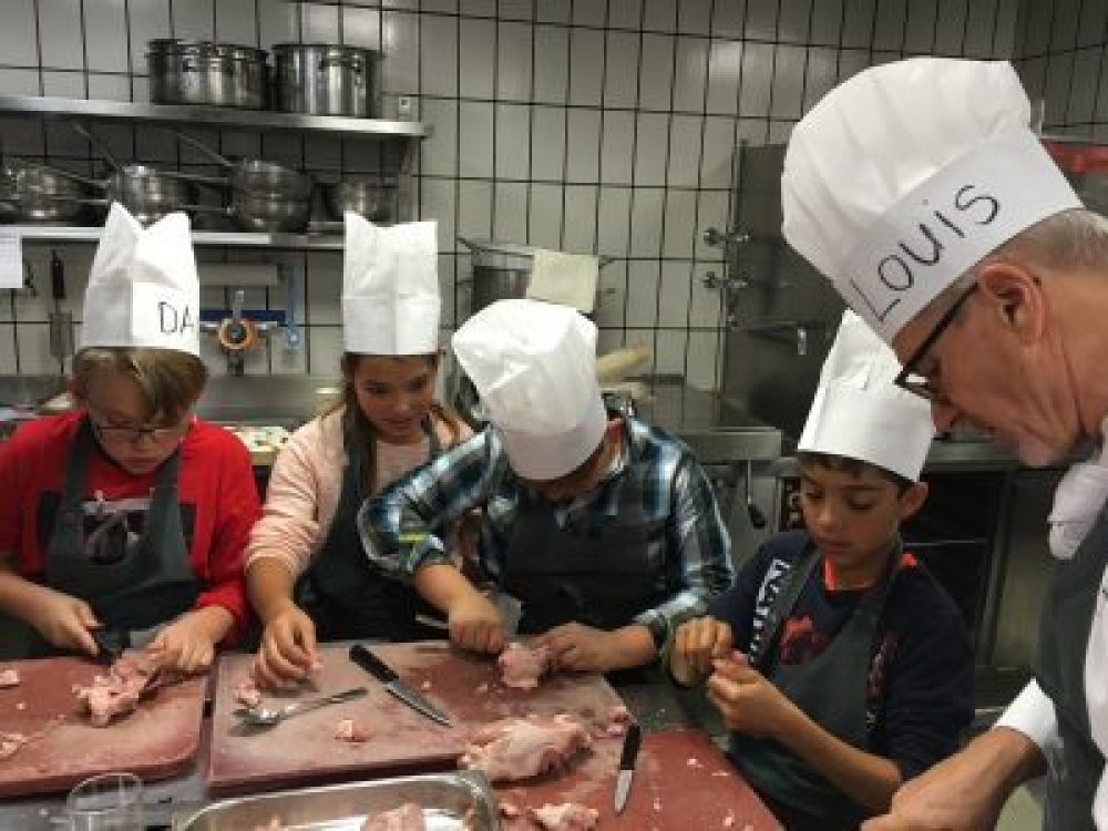 Kinder der amitola kochen mit Louis ein Merci-Diner für ihre Spender