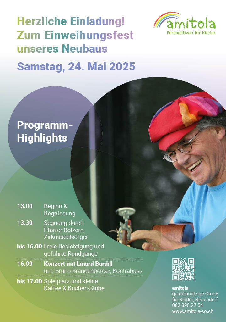 Aktuelles Einweihungsfest «Ein grösseres Haus für kleine Leute» 14. März 2025 Wir freuen uns sehr – wir sind in unser neues Zuhause eingezogen und wollen das mit euch feiern! Vorherige Nächste